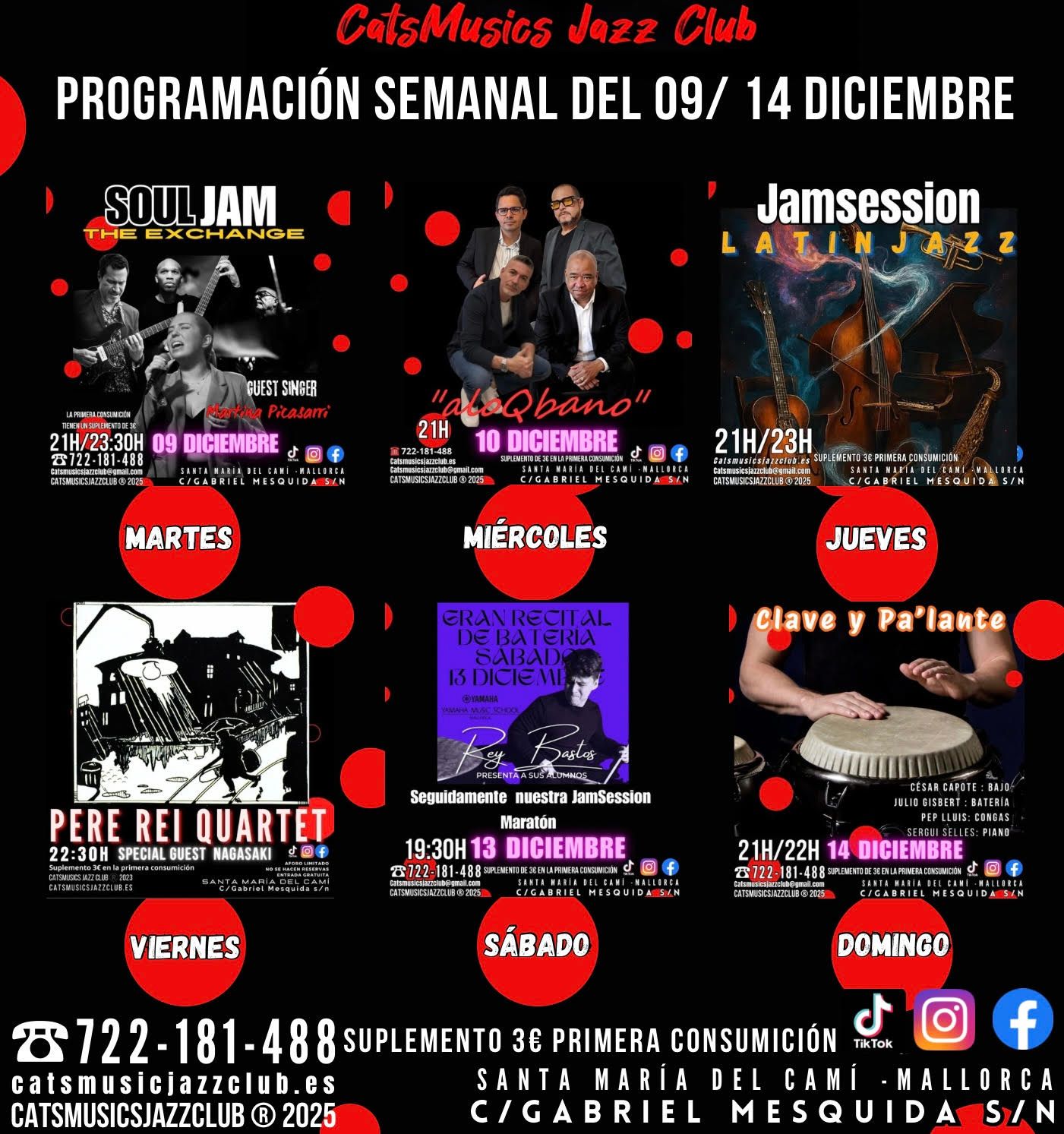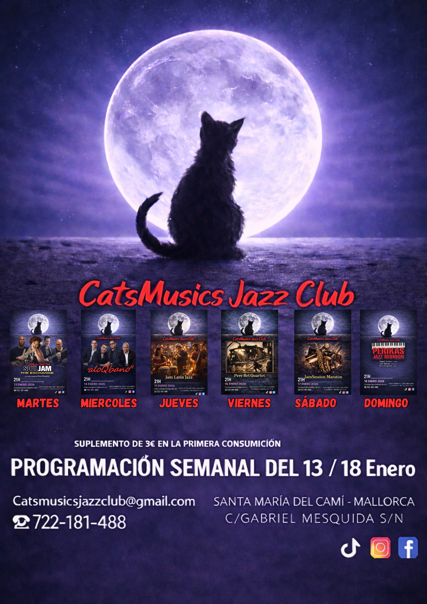 En el pueblo de Santa Maria del Camí, Mallorca, se encuentra CatsMusics Jazz Club, un lugar donde la pasión por la música y el arte se unen para crear experiencias inolvidables. Desde nuestras primeras notas, nos hemos convertido en un referente para los amantes del jazz y la música en vivo.